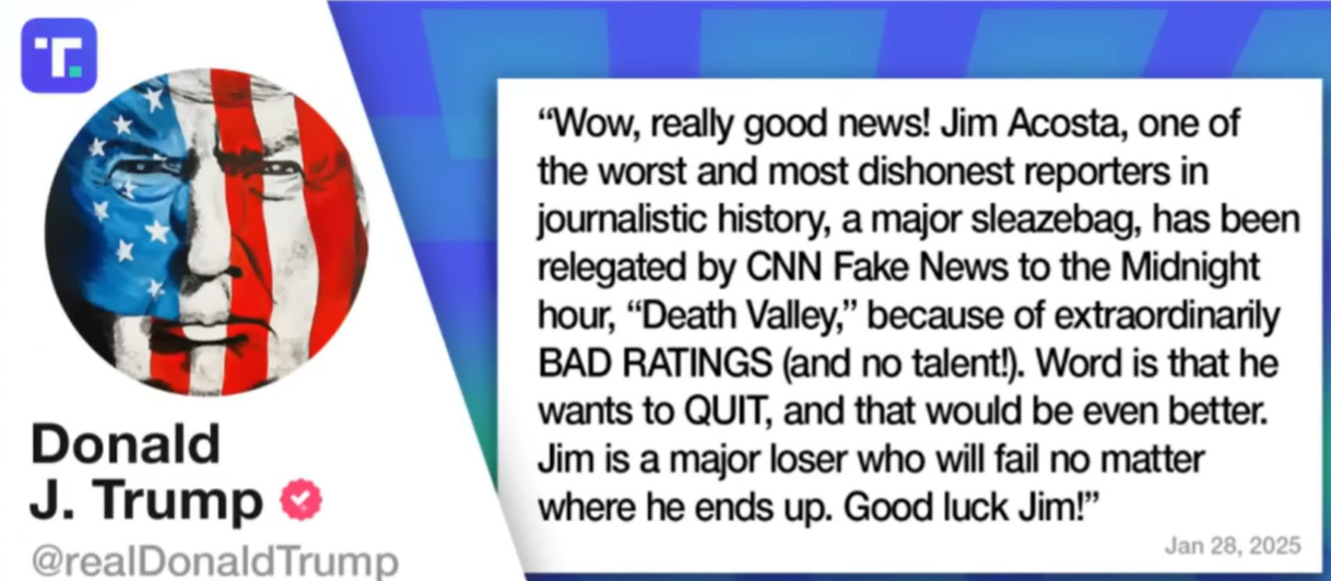 Jim Acosta and what he represents is bad news. Losers of the dying Mainstream media jumping onto Substack may be bad news.I should write a post about it and I will. Look for the post, I will title it "Pathetic".